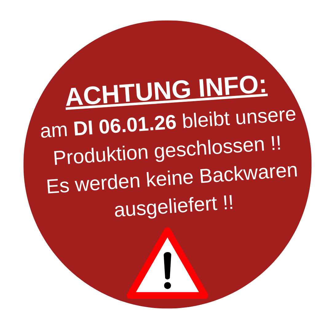 Sonderfall: Dienstag 06.01.26 bleibt unsere Produktion geschlossen!! Es werden keine Backwaren ausgeliefert!!