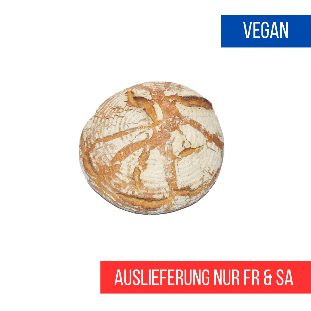 Knuspriges Bio-Steinofenbrot aus Roggenmehl, Weizenmehl, Sauerteig und Hefe.